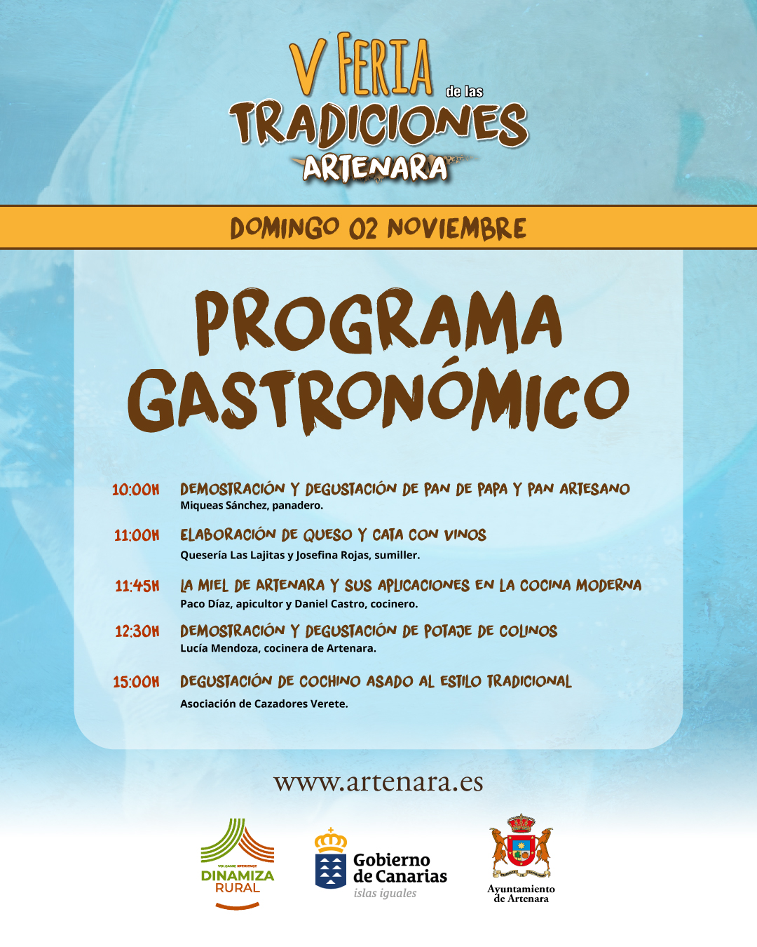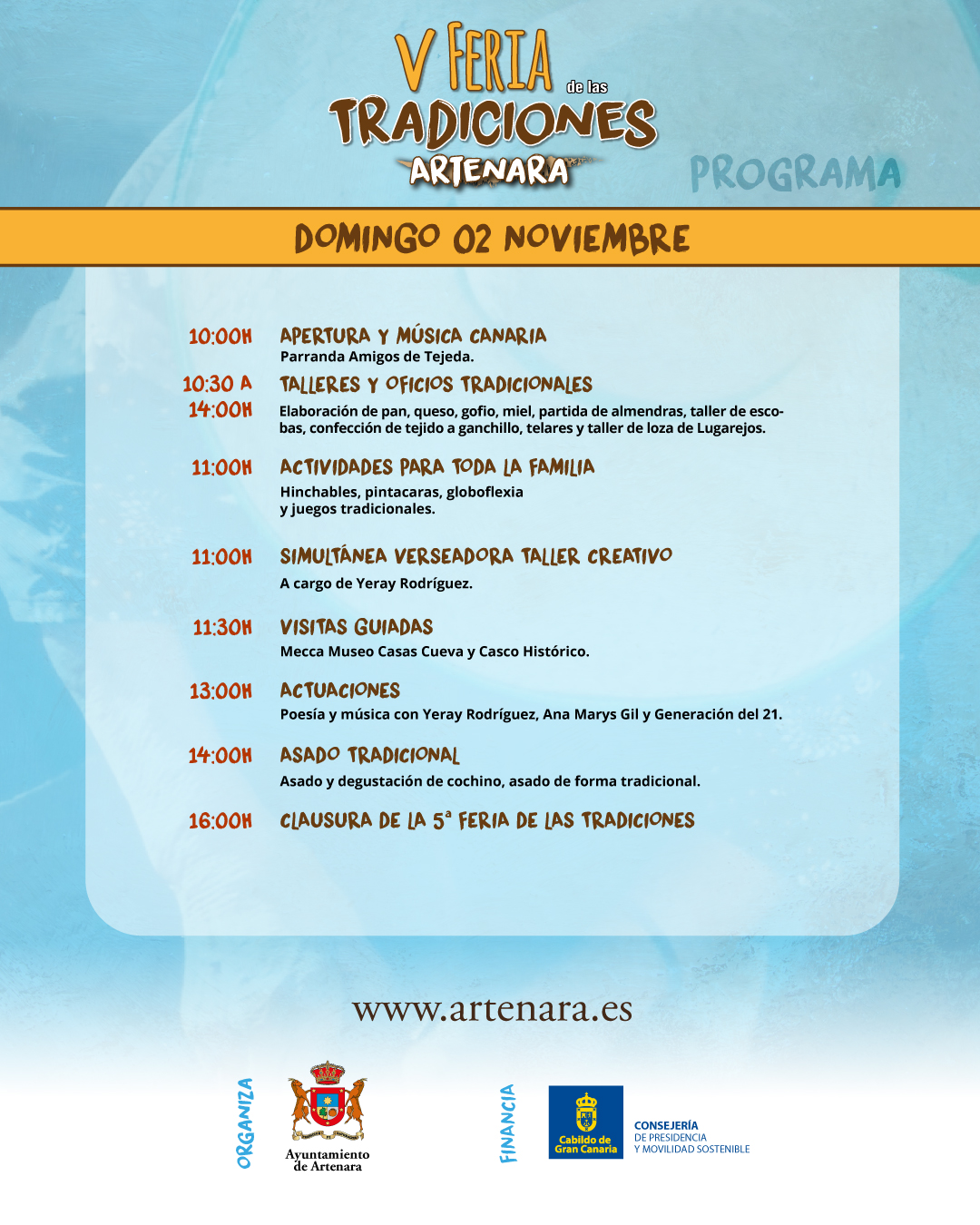 Tendremos un amplio programa de talleres, actividades y actuaciones musicales para toda la familia y programa gastronómico, para degustar comidas típicas canarias de toda la vida.
