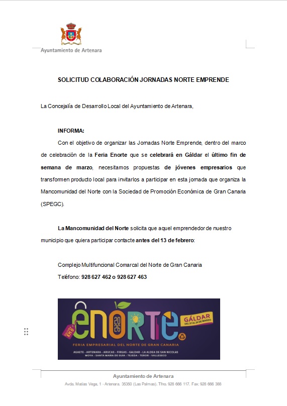 por Artenara| Desarrollo Local, Eventos, Gastronomía, Juventud, Noticias destacadas, Socialtags Artenara, Emprende, FERIA, Gáldar, Jornadas, Norte0