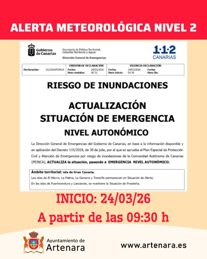 👉 Mantente informado por canales oficialesDesde el Ayuntamiento de Artenara recomendamos máxima prudencia y responsabilidad ante esta situación.