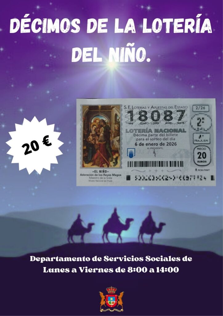 El Ayuntamiento de Artenara pone a tu disposición el número 18087 para el sorteo de la Lotería del Niño del 6 de enero, una de las tradiciones más esperadas para empezar el año con ilusión.