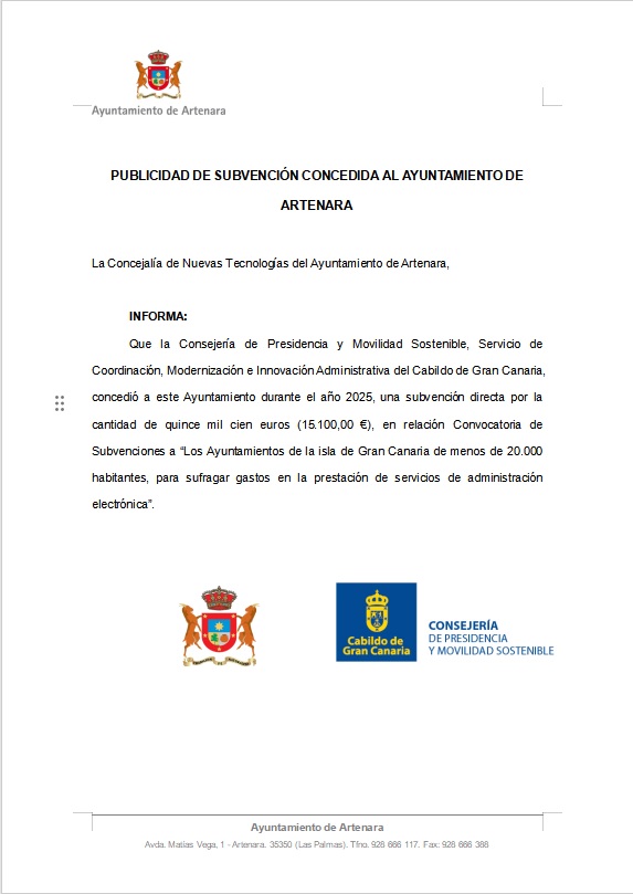 El Cabildo de Gran Canaria concede una subvención al Ayuntamiento de Artenara para la concejalía de nuevas tecnologías